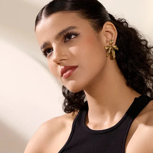 Add a touch of elegance and sophistication to your look with the 18k Gold-Plated Delicate Bow Earrings. Crafted in 18k gold, these earrings feature a graceful bow symbolising love and unity in an exclusive design. Perfect for any occasion, they are a luxurious and timeless choice. Details: 18k gold-plated earrings...
