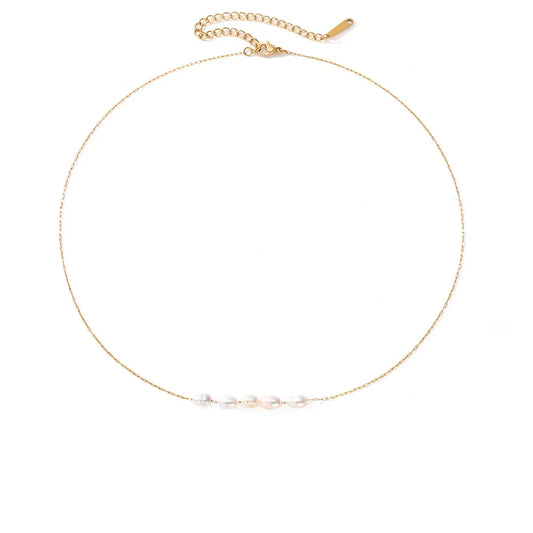 Add a touch of elegance and sophistication to your look with our Minimalist 5-Pearl Necklace. Crafted with delicate natural pearls, this minimalist necklace is perfect for complementing any outfit, from casual to chic. An essential piece for any luxury accessory collection. Details: 18k gold-plated necklace Natural pearl Length: approx. 42...