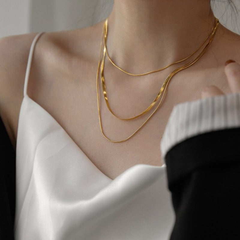 The Triple Minimalist Necklace is a jewel that perfectly combines simplicity and style in a single piece. Its elegant design features three delicate chains, each adorned with its own minimalist pendant, creating a balanced and sophisticated composition.
