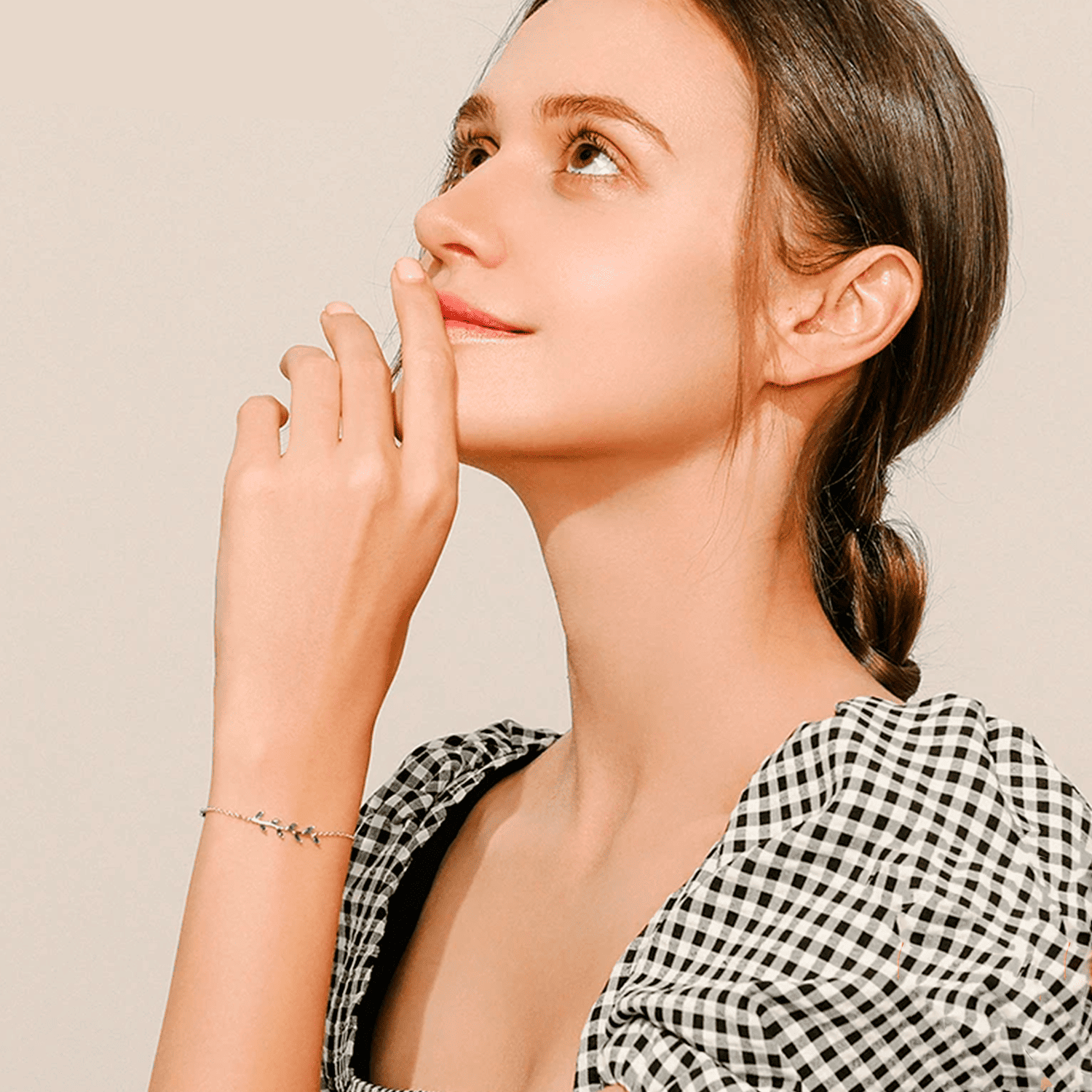 This elegant bracelet is a perfect choice for those who appreciate a minimalist style. With a delicate and exclusive green leaf design crafted in 925 sterling silver, it adds just the right touch of sophistication to any look. A unique piece to make you feel truly special.
